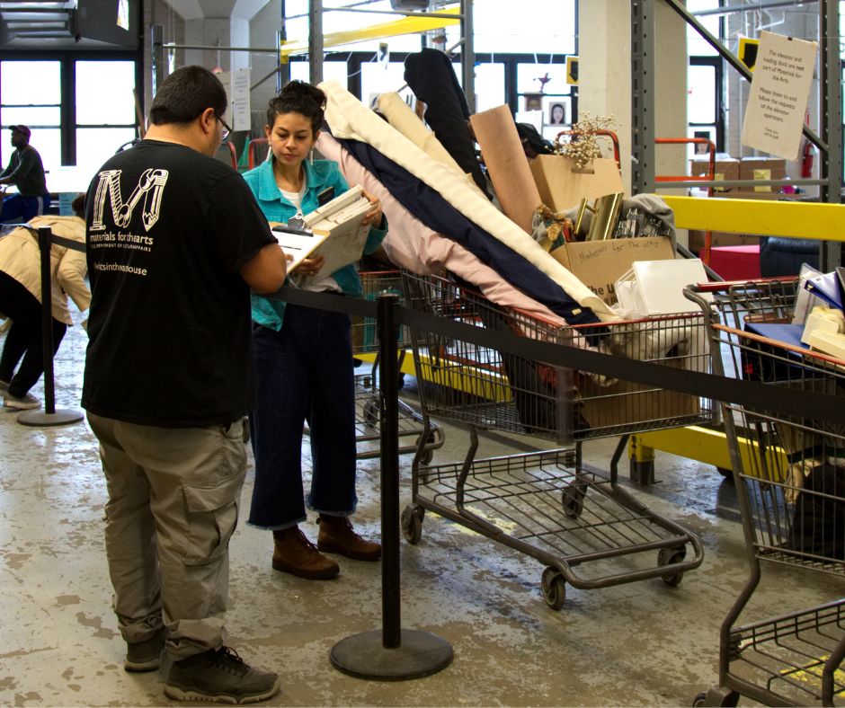 - Redistribute: Materials are given out for free to non-profits and schools with ongoing arts programming in the city.