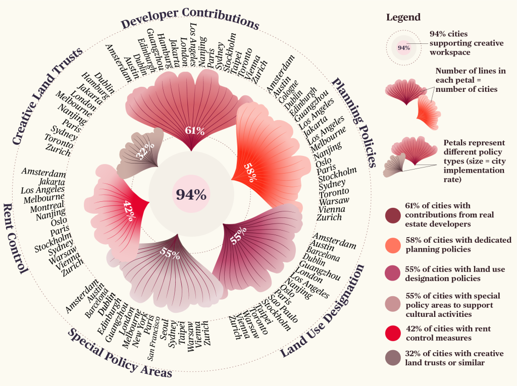 - 94% of cities are actively working to support and secure spaces for creatives